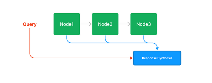 为了便于理解,我们可以将节点视为大约 1k 个单词的文本块,而响应合成则是通过查看相关节点 (文本块) 来给出问题答案 (响应) 的 LLM。这里大家也可以回看我之前的文章《最详细的文本分块 (Chunking) 方法,直接影响 LLM 应用效果》。