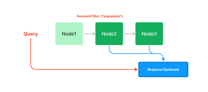当用户输入关键字或短语时,查询列表索引。然后,索引扫描节点列表以查找包含关键字或短语的文档。然后将匹配查询的文档返回给响应合成模块: