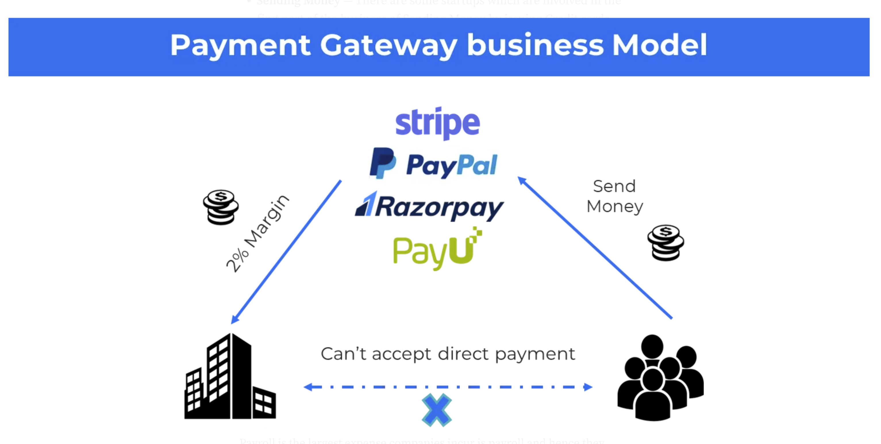 收单结算支付:提供支付网关的初创公司代表我们接受付款并在月底结算。例如: Stripe、Paypal 等